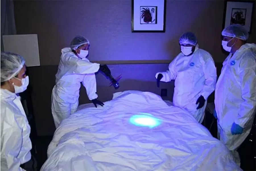 Ya en la habitación aplicaron reactivos como el Blue Star, con resultados positivos para fluidos biológicos, se secuestraron una frazada y un acolchado y se encontró una mancha “pardo-rojiza” sobre un cubre colchón.