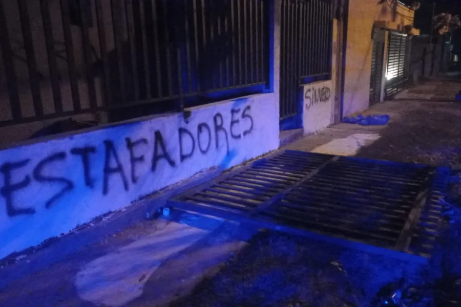 Según el informe policial, los manifestantes realizaban pintadas en el frente de una vivienda, alegando haber sido víctimas de una mujer a la que habrían contratado para la organización de eventos sociales, como cumpleaños, y quien no habría cumplido con los acuerdos pactados.