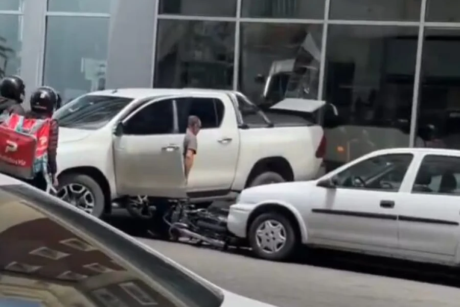 Un nuevo hecho de relatos salvajes tuvo lugar en Mar del Plata cuando un hombre se bajó de su camioneta para discutir con un motociclista tras un choque, pero no puso el freno de mano y destrozó una vidriera.