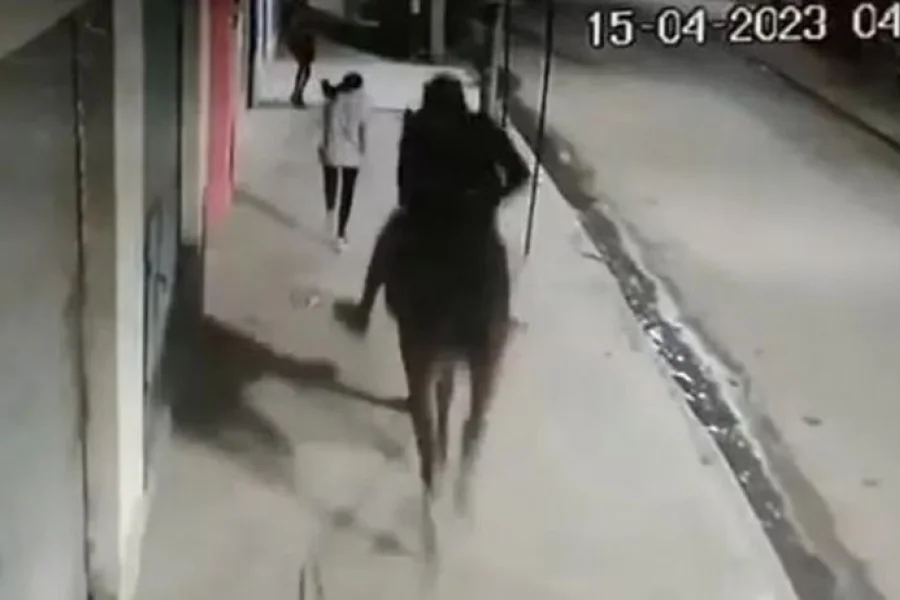 El insólito episodio quedó registrado en video por las cámaras. En las imágenes se puede ver al hombre a caballo dirigiéndose a sus víctimas con intención de robarles, mientras lleva consigo un arma.
