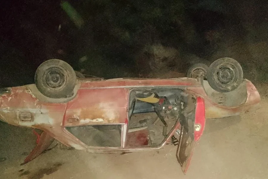 La policia una vez en el lugar, constata el vuelco de un automóvil conducido por un hombre de apellido Nieto (31), domiciliado en el barrio Las Chacras, al momento lo hacía acompañado por una mujer de apellido Vega (29).