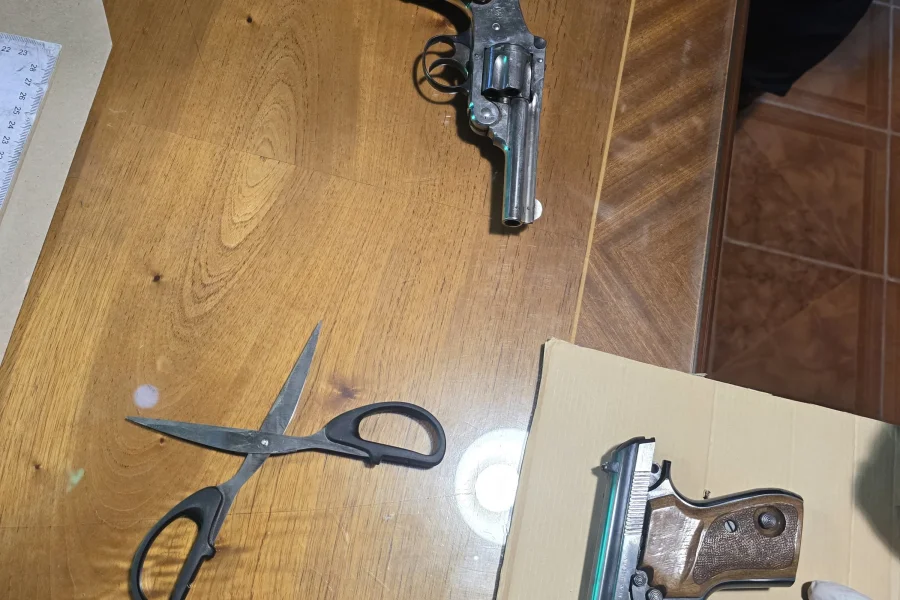 Durante la diligencia judicial, la Policia secuestró un arma Bersa calibre .22 L.R, un revólver calibre .38 modelo corto, 28 municiones de diferentes calibres de 9 mm y .38 mm, 80 municiones calibre .22 marca CCI y 3 municiones calibre .22 marca REM.