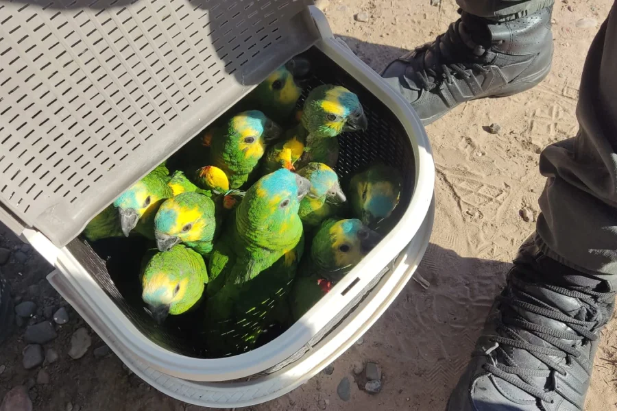 Al momento de la inspección del rodado, los funcionarios observaron la presencia de 58 loros acondicionados en cajas dentro del baúl por lo que dieron intervención con personal de la Secretaría de Ambiente y Desarrollo Sustentable de Salta, que por orientación de la Fiscalía Federal de Orán, se procedió al secuestro de las aves en infracción a la Ley 5.513/79 de “Protección de la Fauna Silvestre”.