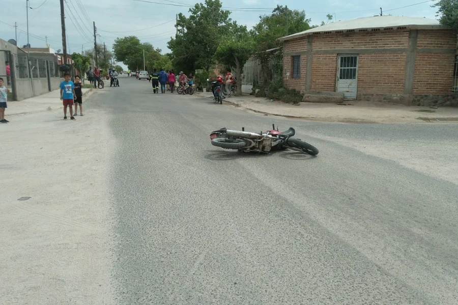 En Aimogasta, una motocicleta Motomel S3 de 150 c.c. de color roja con negro, conducida por una persona de sexo femenino menor de edad, circulaba por calle Catamarca de Oeste a Este y al llegar a la intersección de calle Almonacid colisionó con otra motocicleta de marca Honda Titan de 150 c.c., de color roja, a bordo de una persona se sexo masculino mayor de edad, que circulaba por calle antes mencionada de Norte a Sur.
