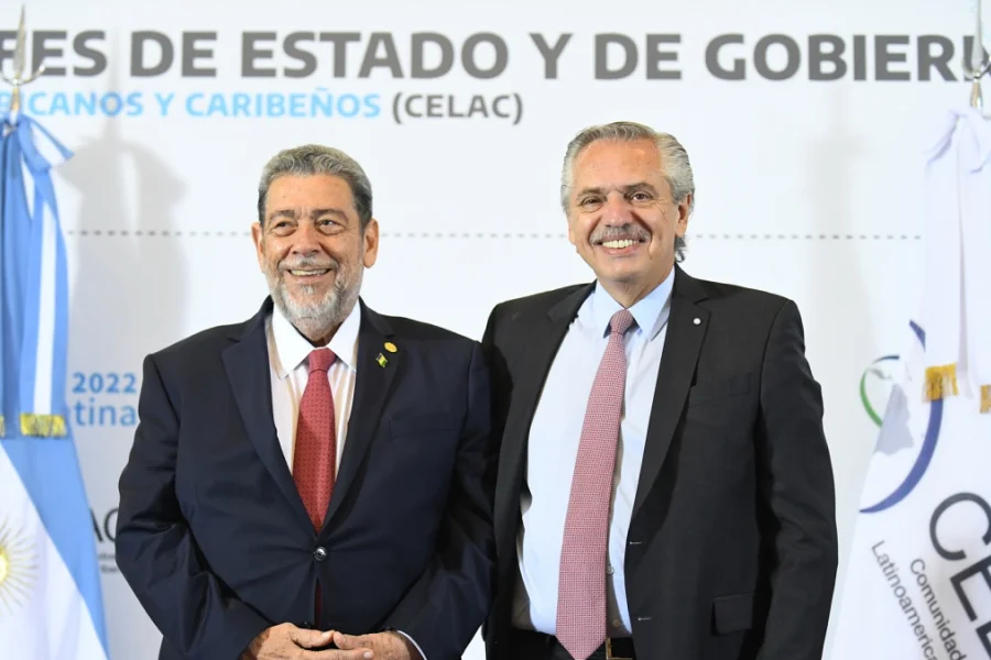 El presidente Alberto Fernández entregó este martes la presidencia pro tempore de la Comunidad de Estados Latinoamericanos y Caribeños (Celac) al primer ministro de San Vicente y las Granadinas, Ralph Gonsalves, quien asumió por el período 2023.