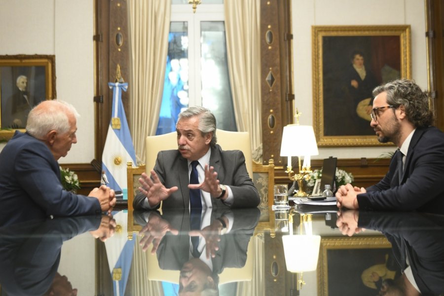 La reunión entre Fernández y Borrell se realizó en el despacho presidencial de Casa Rosada, donde analizaron los desafíos globales y coincidieron en el interés mutuo de fortalecer la relación bilateral y regional, previo a la III Cumbre de Cancilleres de la Comunidad de Estado Latinoamericanos y Caribeños (Celac) con sus pares de la Unión Europea (UE) que se desarrollará el jueves próximo en el Centro Cultural Kirchner (CCK), convocado por la Argentina con el objetivo de reforzar el diálogo birregional.