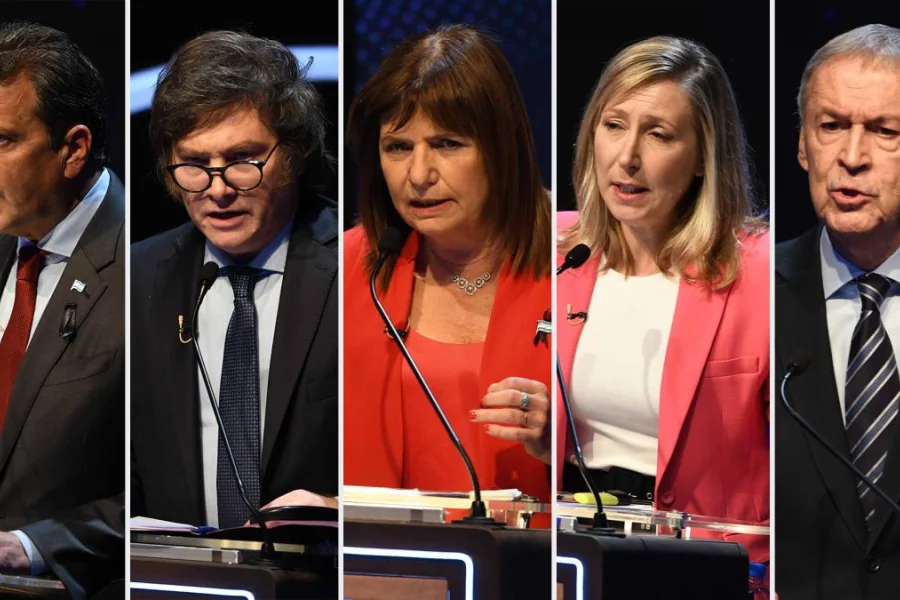 Los candidatos presidenciales Sergio Massa (UxP), Patricia Bullrich (JxC), Javier Milei (LLA), Juan Schiaretti (HxNP) y Myriam Bregman (FIT) se cruzaron este domingo por sus propuestas en materia de desarrollo humano, vivienda y protección del ambiente, con el foco puesto en el cambio climático, alquileres, acceso al crédito y uso de los recursos naturales, entre otros puntos.