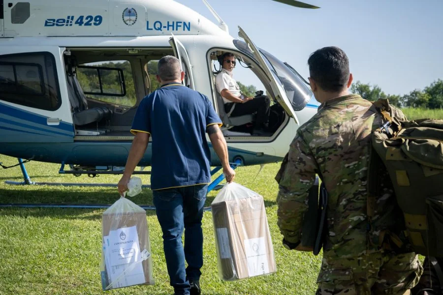 Paralelamente, desde las 7.15, tres urnas viajaron en helicóptero en un operativo especial para llegar a tres escuelas consideradas de alta montaña ubicadas en Tucumán.