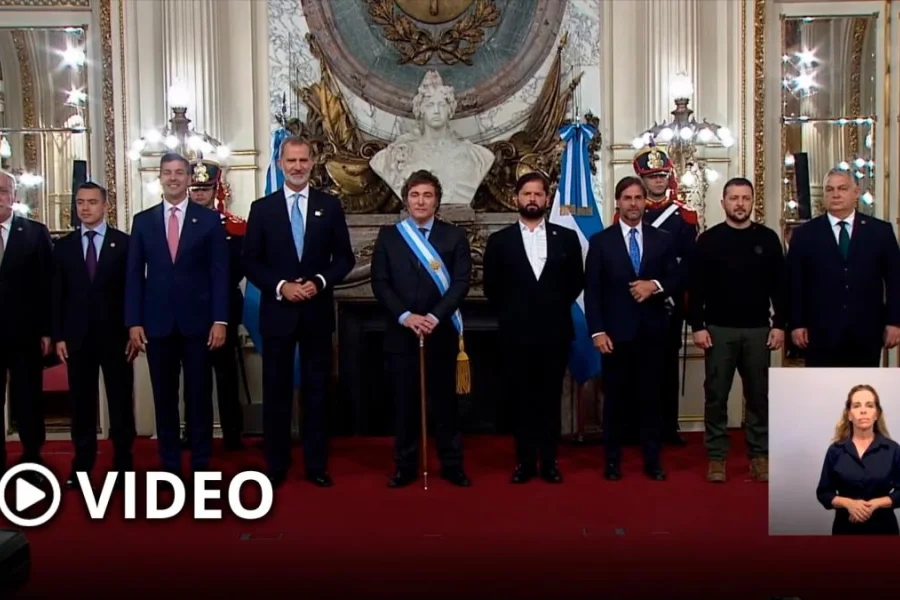 Milei llegó pasadas las 13.30 a la Casa Rosada. Y a partir de las 14.10, junto a la vicepresidenta Victoria Villarruel y la designada canciller Diana Mondino, comenzó a recibir el saludo de los mandatarios, representantes y delegaciones extranjeras e invitados especiales. Entre ellos el rey de España, Felipe VI; el presidente de Ucrania, Volodimir Zelenski y otros mandatarios europeos y latinoamericanos.