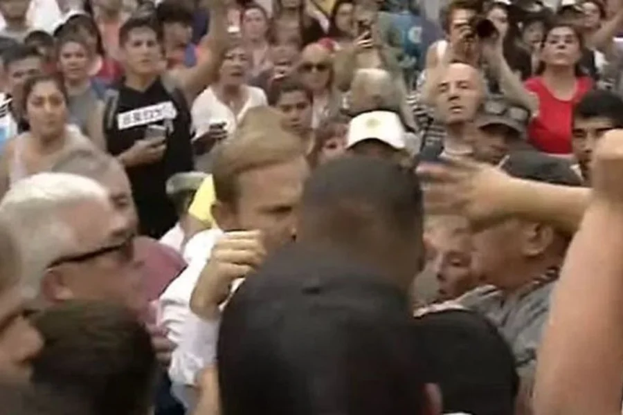 Ambos bandos cruzaron cantos, gritos y algunos empujones, y los libertarios rompían boletas de Unión por la Patria mientras cantaban "la casta tiene miedo".