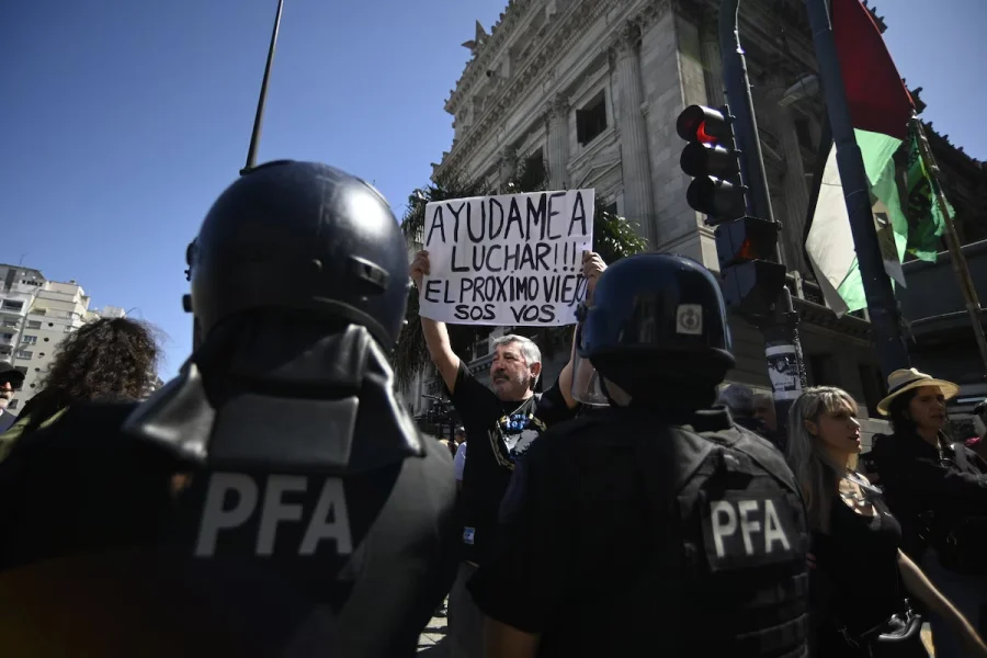 Una de las jubiladas que se acercó a la manifestación relató que este miércoles hubo más gente porque se sumaron “todos los trabajadores de fábrica en lucha, del Bonaparte, del Garrahan, han venido a solidarizarse con nosotros y por eso el despliegue policial”.