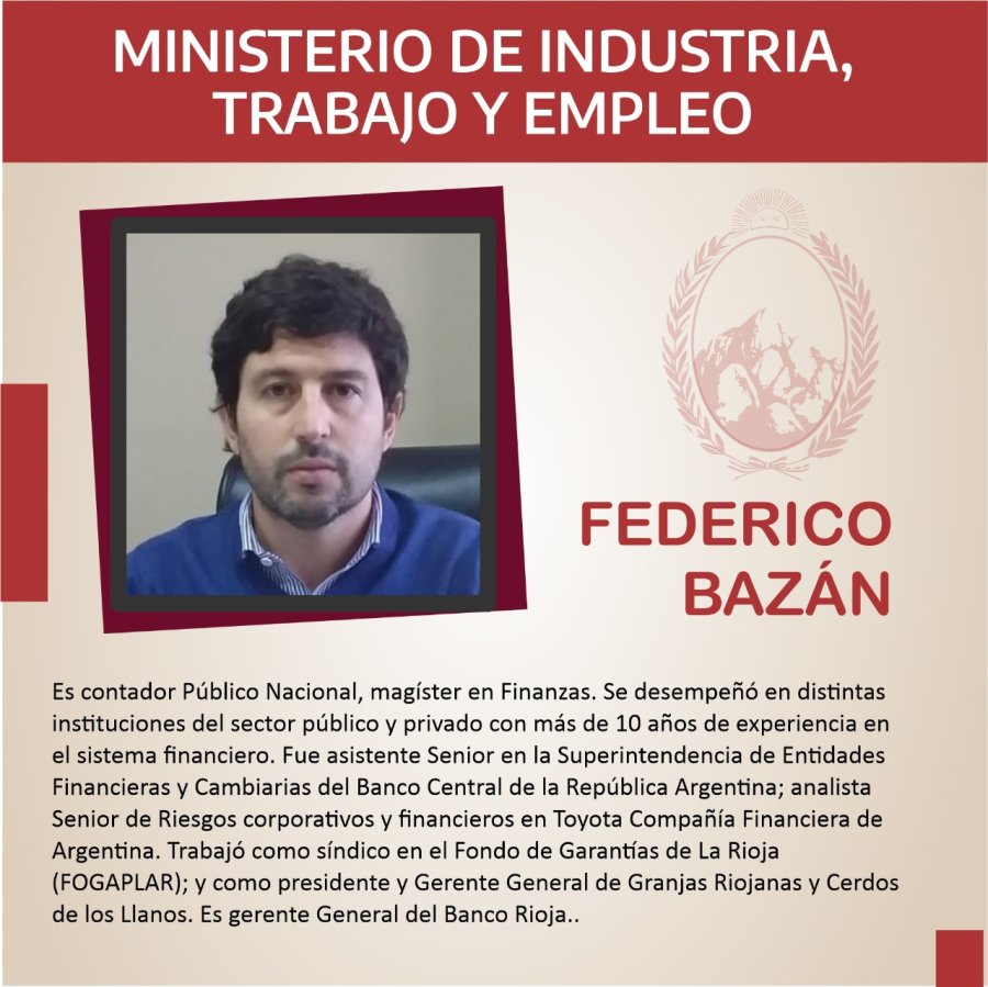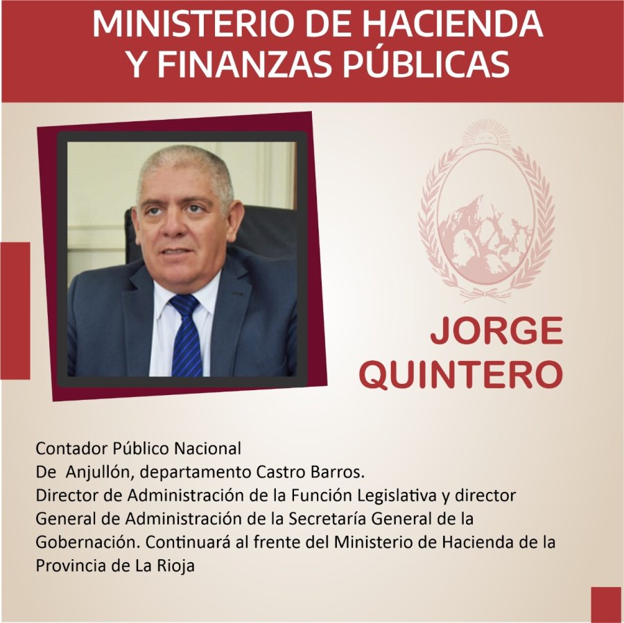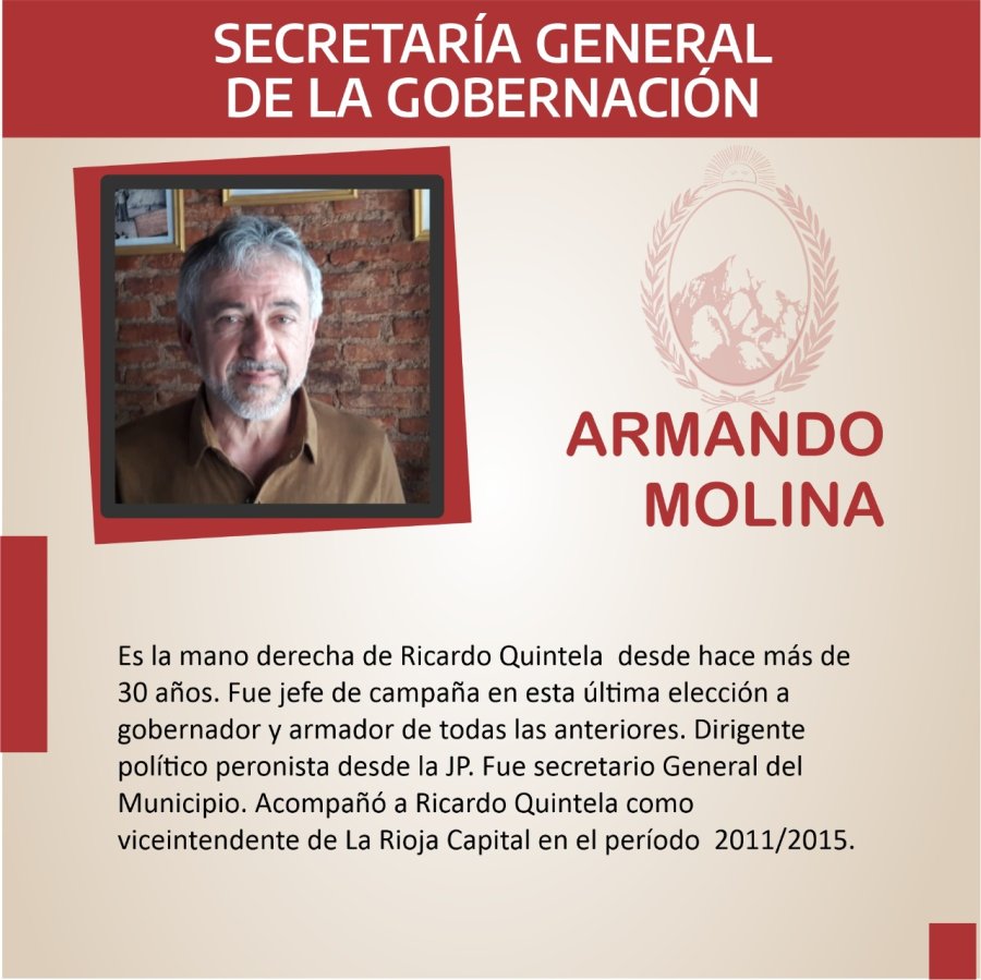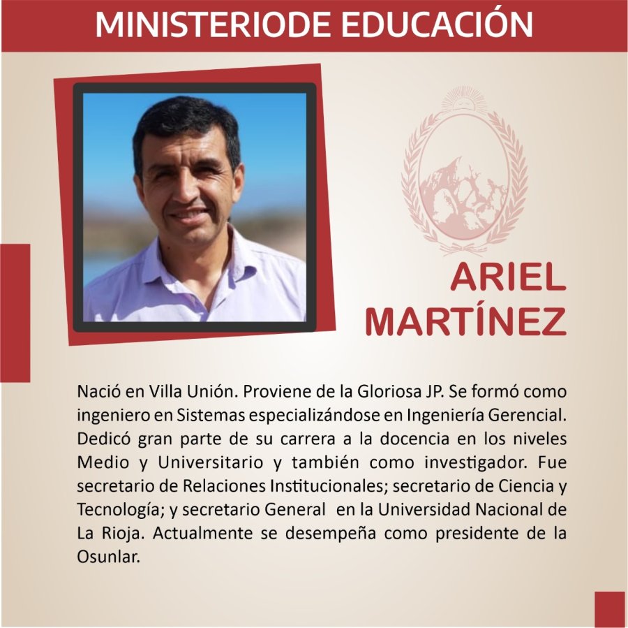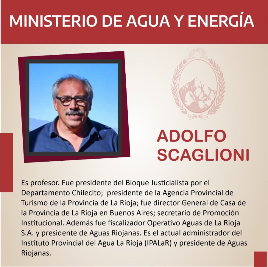 El gobernador hizo lo propio con Adolfo Scaglioni ministro de Agua y Energía; Gabriela Pedrali, ministra de Desarrollo, Igualdad e Integración Social; Ariel Martínez ministro de Educación; Jorge Quintero ministro de Hacienda y Finanzas Públicas; Federico Bazán ministro de Industria, Trabajo y Empleo; Juan Velardez ministro de Infraestructura y Transporte; Fernando Rejal ministro de Producción y Ambiente; Juan Carlos Vergara ministro de Salud, Gabriela Asís ministra de Seguridad, Justicia y Derechos Humanos; Gustavo Luna ministro de Turismo y Culturas; Ariel Puy Soria ministro de Vivienda, Tierras y Hábitat.