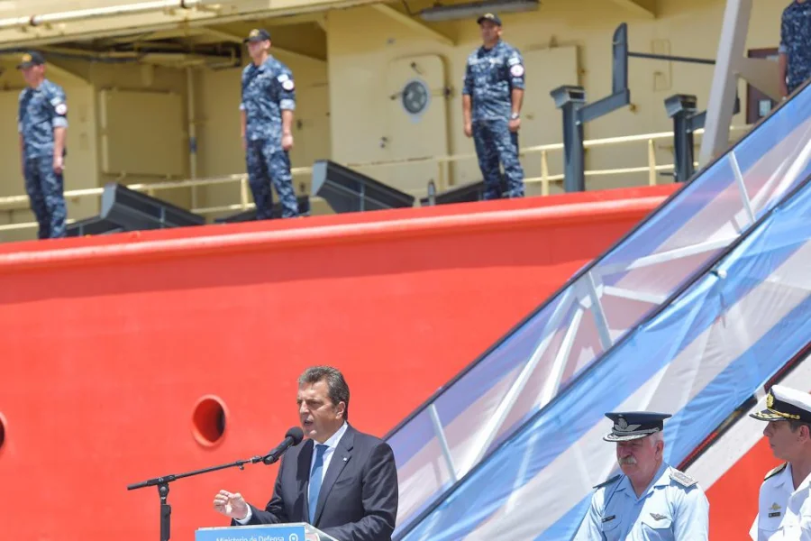 "En los últimos años, la Argentina ha discutido el rol de las Fuerzas Armadas, pero eso es una discusión del pasado", dijo Massa ante las principales autoridades de las Fuerzas Armadas y los ministros Jorge Taiana (Defensa) y Daniel Filmus (Ciencia y Tecnología) en un acto en el Embarcadero Naval del Puerto de Buenos Aires.