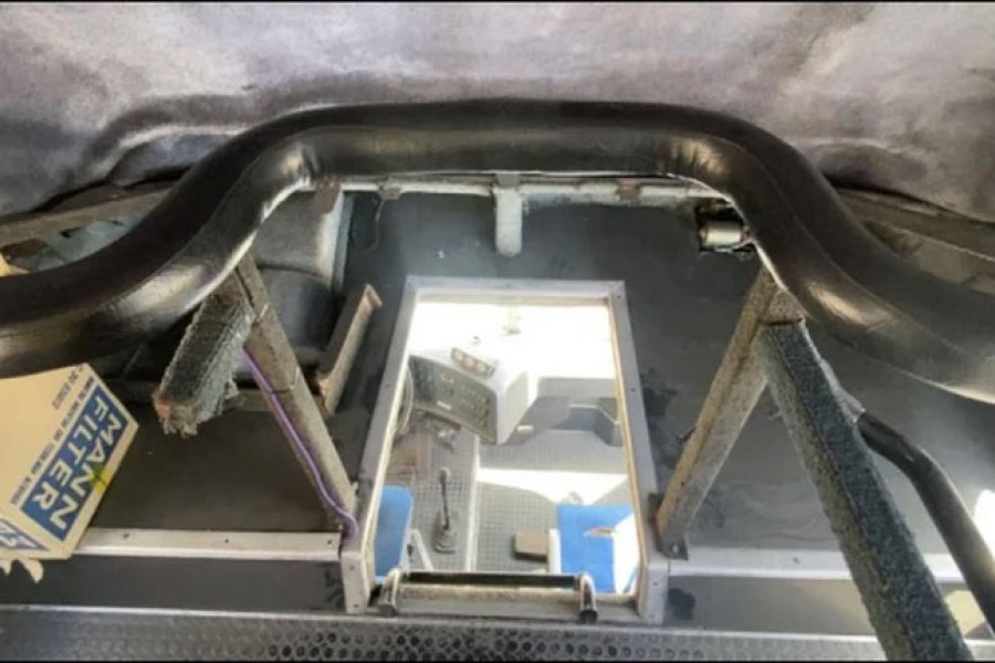 Y por último, el equipamiento clave para una campaña en las rutas: escalerilla fija hacia escotilla de techo que permitió a los candidatos salir a saludar en su balcón portátil.