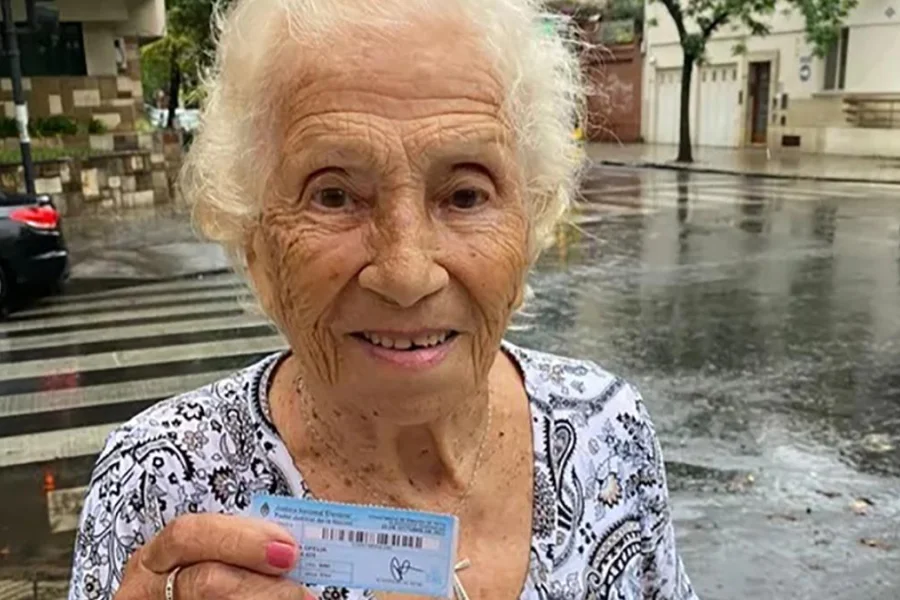 La mujer concurrió a votar acompañada por un sobrino bisnieto de 14 años.