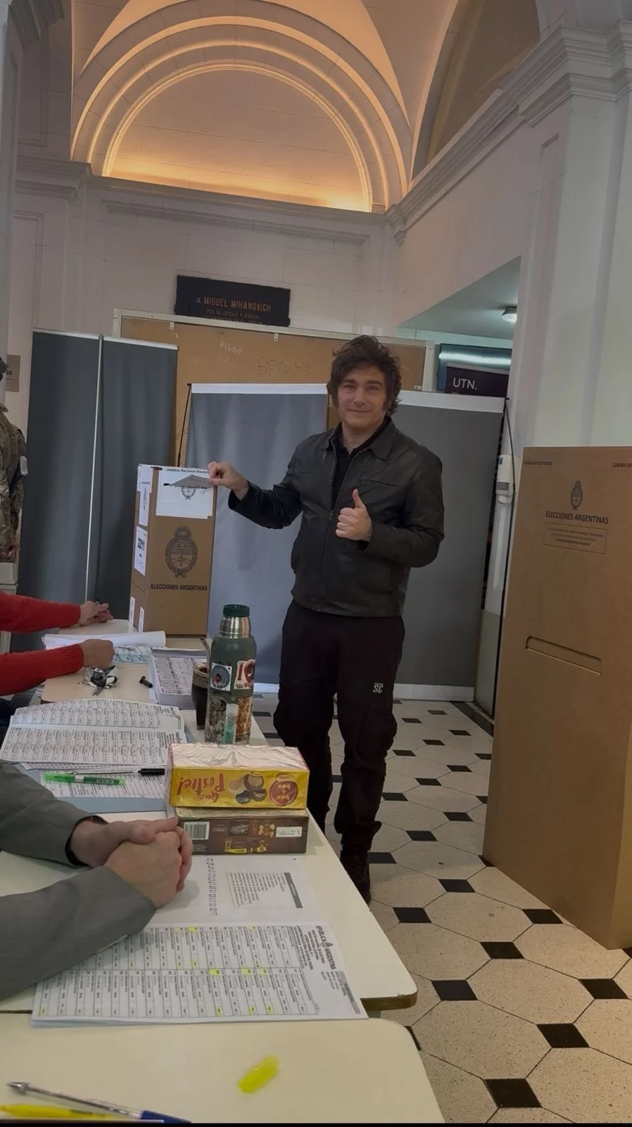 Tras emitir su voto, el líder libertario se retiró saludando a más personas y posando para las fotos con algunas de ellas, mientras que luego se retiró en la camioneta que lo trasladaba junto a su hermana.
