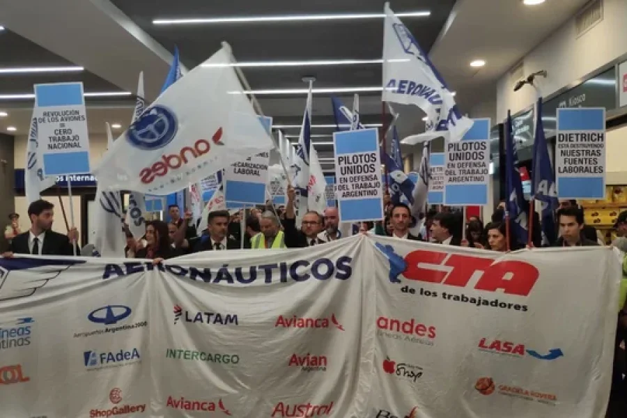 A la decisión anunciada días atrás por APLA (Asociación de Pilotos de Líneas Aéreas), de concretar esa medida en reclamo de una recomposición salarial, se sumaron ahora los trabajadores de la Asociación del Personal Aeronáutico (APA) y Unión del Personal Superior y Profesional de Empresas Aerocomerciales (UPSA), que llevarán adelante también asambleas informativas en la estación aérea metropolitana.