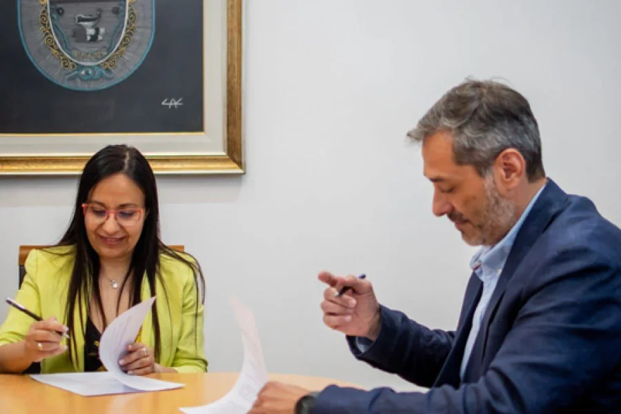 El acto estuvo encabezado por el secretario de Ambiente, Santiago Azulay, y la rectora de la UNLaR, Natalia Álvarez Gómez, quienes rubricaron el acuerdo junto al vicerrector Luis Oscar Oviedo y el decano del Departamento Académico de Ciencias y Tecnologías Aplicadas a la Producción, al Ambiente y al Urbanismo.