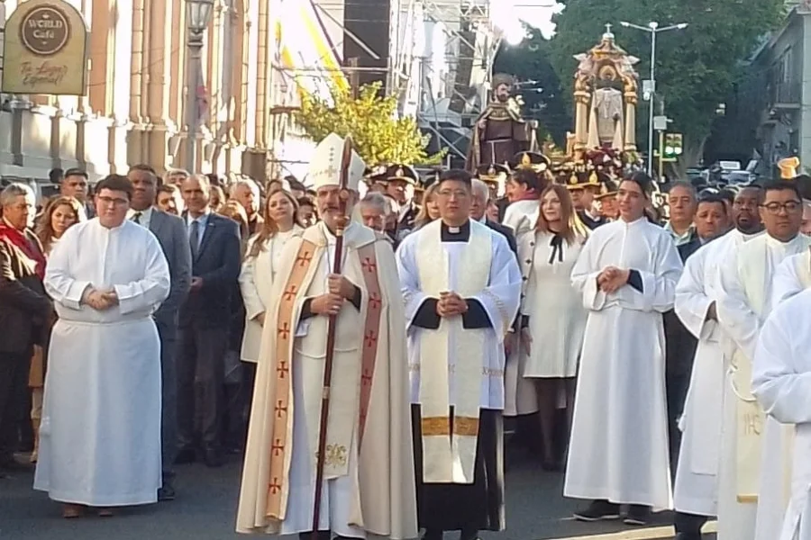 Damos gracias por los días de novena que hemos vivido y en los cuales meditamos sobre la sinodalidad en la Iglesia. Sobre el caminar juntos que tenemos que vivir recibiendo los talentos que Dios nos ha dado a cada uno y poniéndolos al servicio de la misión de la Iglesia”, así encabezó Braida su mensaje, tras la procesión que se realizó por el centro de la Ciudad.