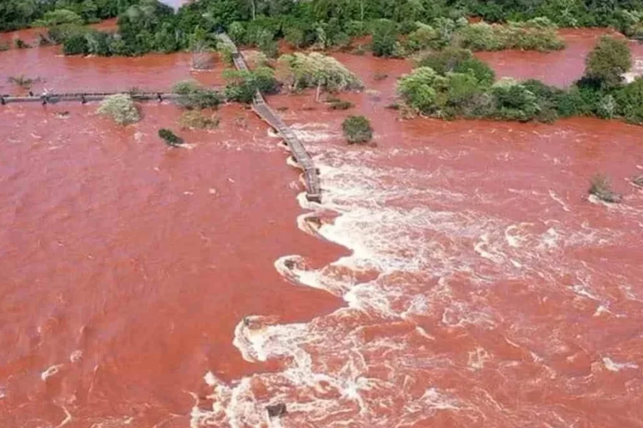 El lunes, por la mañana, el caudal alcanzó los 24.100 m3/seg. lo que generó que en la Garganta del Diablo (el salto más importante de las Cataratas) se reporte el desplazamiento de 5 tramos de 12 metros de las pasarelas. Esta situación de alerta hizo que el Parque Nacional cierre sus puertas hasta que el panorama mejore.