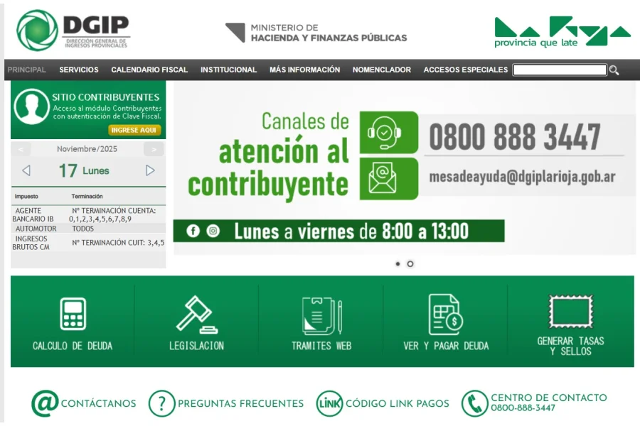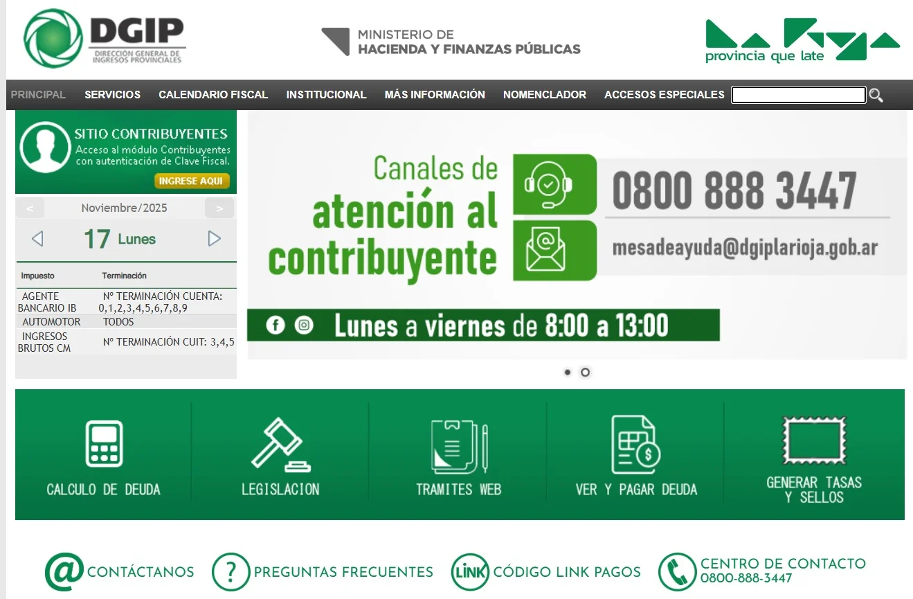 Para consultas o inconvenientes con el sistema, los contribuyentes pueden comunicarse con la DGIP La Rioja a través de sus canales de atención al público, disponibles de lunes a viernes en los horarios oficiales.