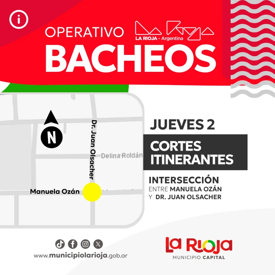 Agrandar imagen Enviar Imprimir Cortes de calles para hoy jueves 2 de mayo Unirme al canal de Whatsapp de "Nueva Rioja" La obra se realizará en: Intersección entre Manuela Ozan y Dr. Juan Olsacher