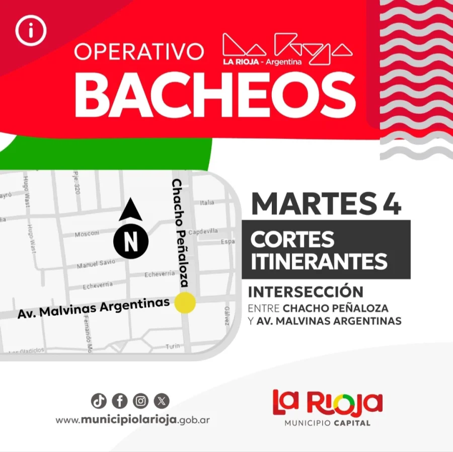 Agrandar imagen Enviar Imprimir Cortes de calles para hoy martes 4 de junio Unirme al canal de Whatsapp de "Nueva Rioja" La obra se realizará en: Intersección entre Chacho Peñaloza y Av Malvinas Argentinas