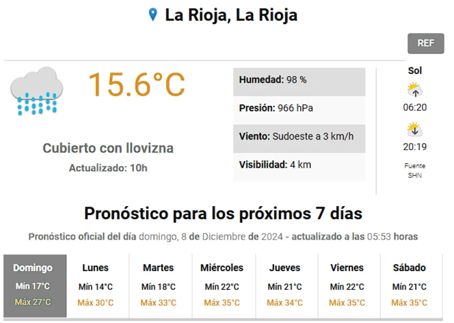 Agrandar imagen Enviar Imprimir Domingo con cielo cubierto por llovizna Unirme al canal de Whatsapp de "Nueva Rioja"