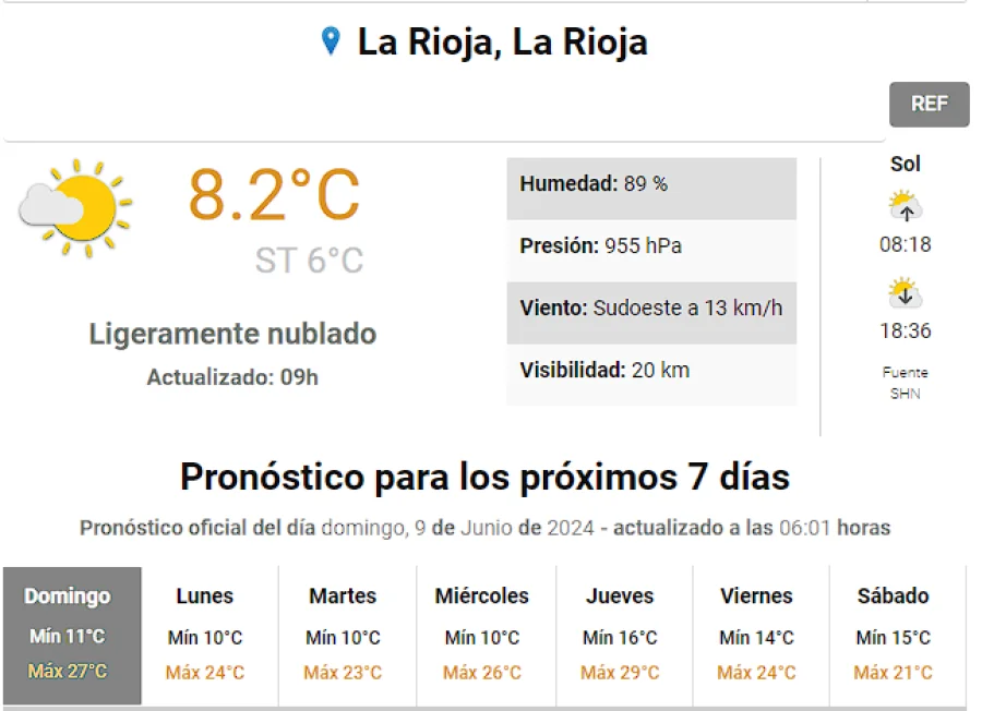 Agrandar imagen Enviar Imprimir Domingo con cielo prácticamente despejado en la Capital Unirme al canal de Whatsapp de "Nueva Rioja"