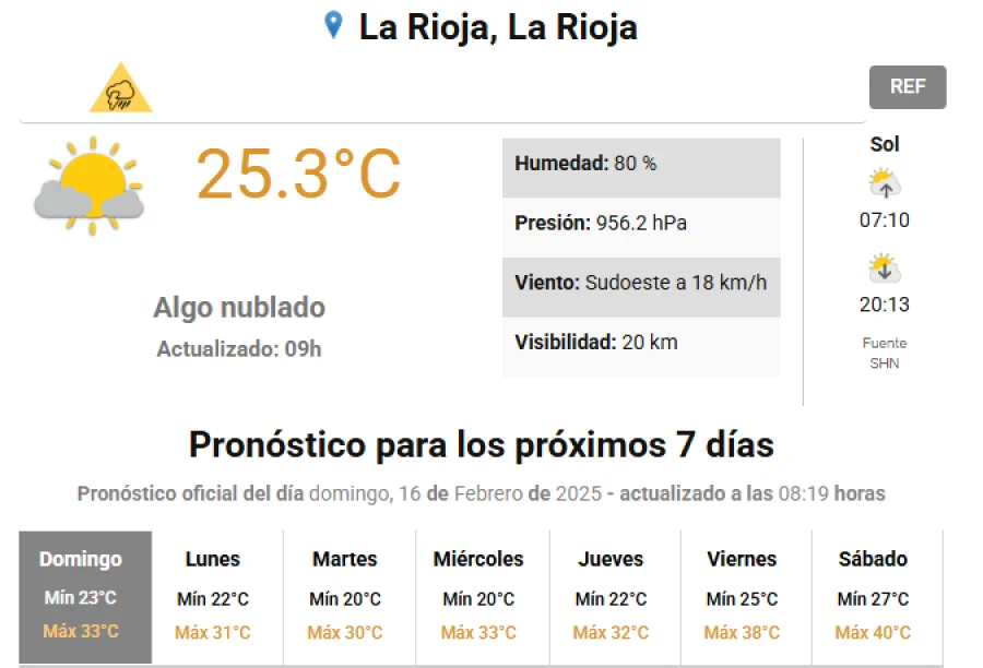 El SMN indica que hoy rige un alerta amarillo por tormentas el cual se comenzará a notar desde la tarde noche. La temperatura máxima anunciada es de 33°C.