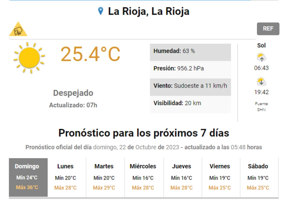 Agrandar imagen Enviar Imprimir Domingo con pronóstico y alerta por lluvias aisladas Unirme al canal de Whatsapp de "Nueva Rioja"