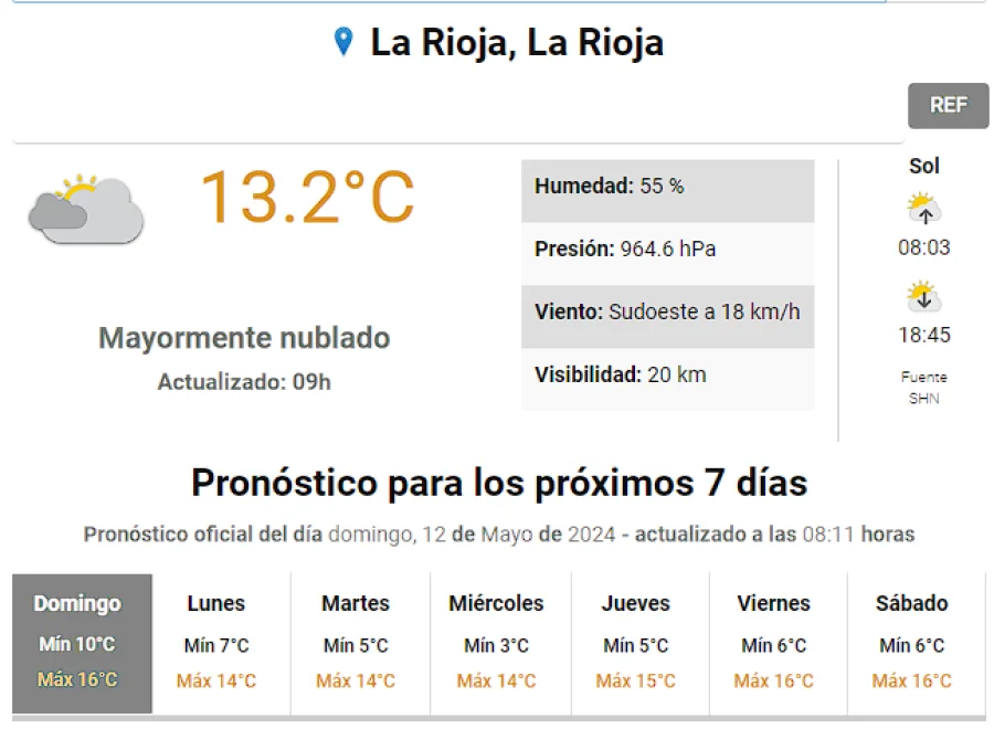 El SMN reporta que la temperatura máxima para hoy será 16 grados y la mínima será de 10 grados. No se esperan lluvias.