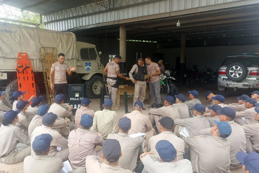 Los aspirantes pudieron tomar contacto con el espacio de trabajo y equipamiento en el que se desarrollan las actividades del grupo de Policía de Alto Riesgo de la provincia. En dicha ocasión, los cursantes estuvieron a cargo del Director del Dpto. de Formación Agentes Brigadier General Ángel V. Peñaloza, Crio.José Avila, Jefe de oficina de Cuerpo Of. Ppal. Cristian Vega, y fueron acompañados por instructores y la Profesora de Educación Física del Dpto. Rocío Lucero.