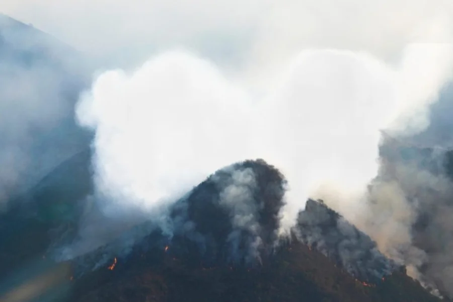 En ese sector se observó actividad de humo en suspensión y nubosidad a baja altura en el interior del perímetro Norte.