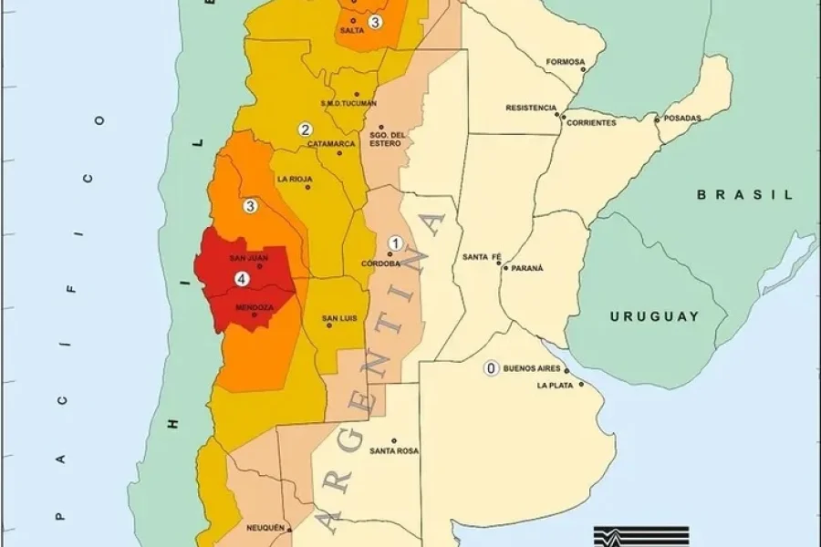 El mapa de zonificación sísmica en la Argentina “tiene 5 sectores del cero a 4 en orden creciente de peligro sísmico”.
