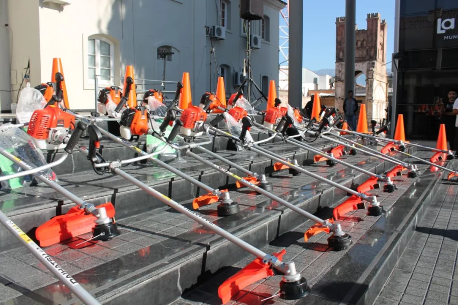 Durante un acto en la explanada del municipio, Molina distribuyó 18 desmalezadoras y 3 cortadoras de césped a los responsables de las jefaturas zonales de los CEPAR Sur, Norte, Este, Oeste y Centro. Además, proporcionó conos, silbatos, gafas de seguridad, lona verde de cerco y chalecos refractarios para garantizar la seguridad del personal.