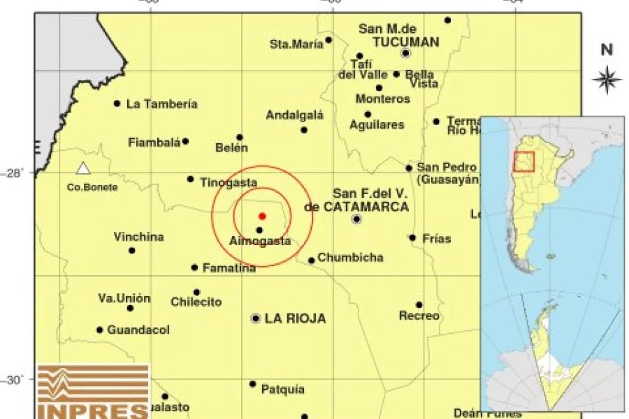 Según el reporte del INPRES, ocurrió a las 14.25 en la zona norte de la provincia, ya que el epicentro fue situado a 15 km al norte de Aimogasta y a 70 km al noroeste de Chumbicha.