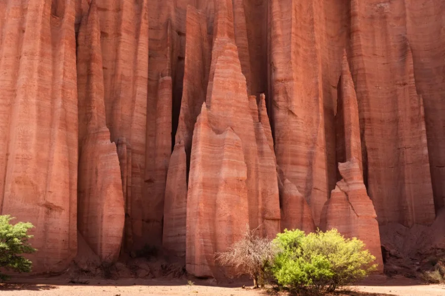 El Parque Nacional Talampaya aparece en el centro oeste de La Rioja y se extiende por 213.000 hectáreas. Allí, todo es rojo. Escarlata, bermejo, colorado, granate, púrpura, rubí, carmesí, apunta el diccionario de sinónimos, cuando uno busca ayuda para definir este paisaje de tierra ardiente.