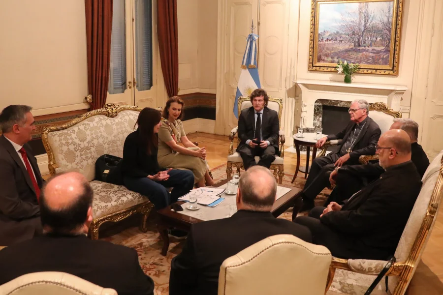 El presidente Javier Milei recibió este martes en Casa Rosada a la Comisión Ejecutiva de la Conferencia Episcopal Argentina, quienes le manifestaron al jefe de Estado su "preocupación" por la "situación económica" que atraviesa el país.