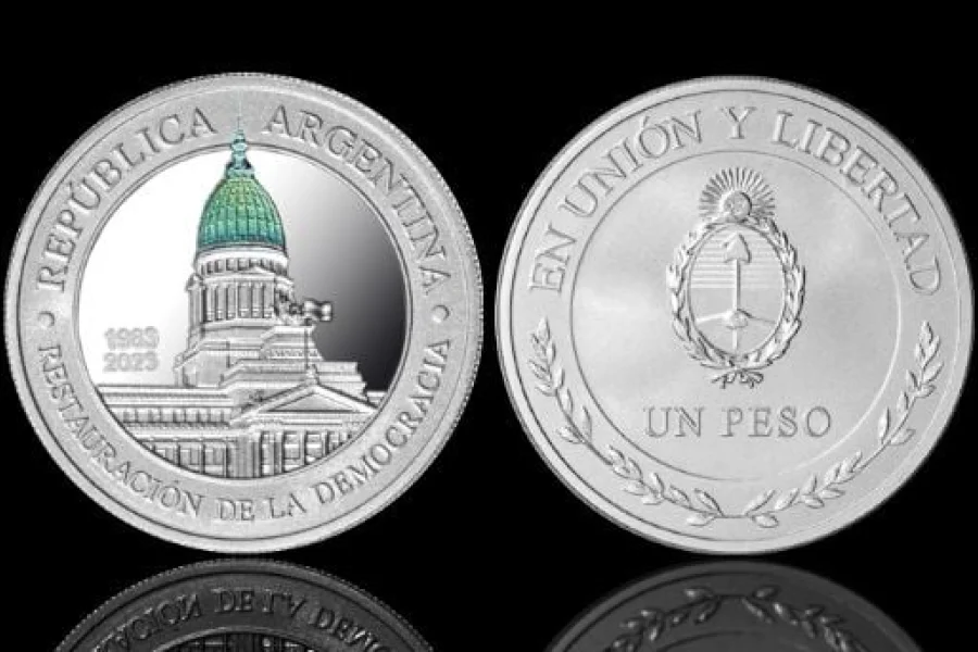 Junto al edificio se lee 1983, fecha que se conmemora, y 2023, el año de acuñación. Mientras que en el arco superior se lee “República Argentina”, y en el inferior, “restauración de la democracia”: “El Congreso representa el ámbito emblemático de la representatividad popular”, detalló el BCRA.
