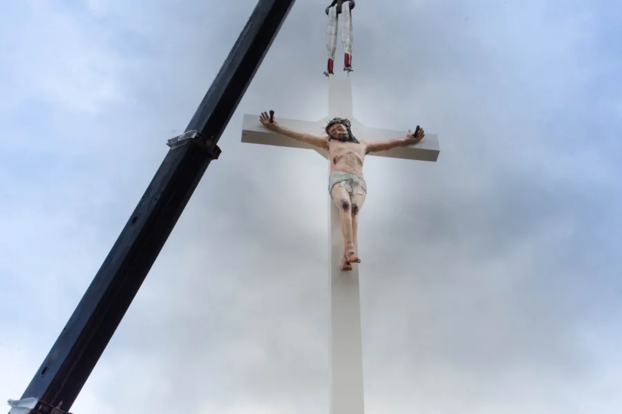 La peregrinación comenzó en Avenida Perón y siguió el recorrido de la tradicional procesión de San Francisco. La obra fue realizada por el artista, Nicolas Da Silva (creador también del cristo de la hermandad) bajo la consigna “Dios se hizo hombre para salvar al mundo “