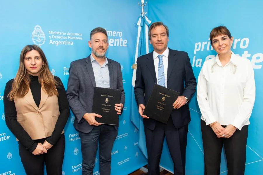 De la firma del convenio participaron la directora nacional del Registro de la Propiedad Automotor y Créditos Prendarios (DNRPA), María Eugenia Doro Urquiza; y la jefa de la Unidad del Gabinete de Asesores del Ministerio de Justicia, Gimena Del Rio.