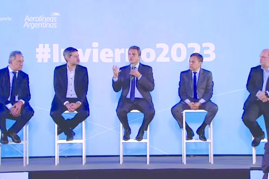 Los ministros nacionales de Economía, Sergio Massa; de Turismo y Deportes, Matías Lammens y de Transporte, Diego Giuliano; junto con el presidente de Aerolíneas Argentinas, Pablo Ceriani, y el embajador de Argentina en Brasil, Daniel Scioli, encabezaron el lanzamiento de la temporada alta de invierno 2023 en el Centro Cultural Kirchner. En ese marco, anunciaron nuevas rutas aéreas y las acciones a desarrollar durante la temporada para seguir potenciando el turismo receptivo.