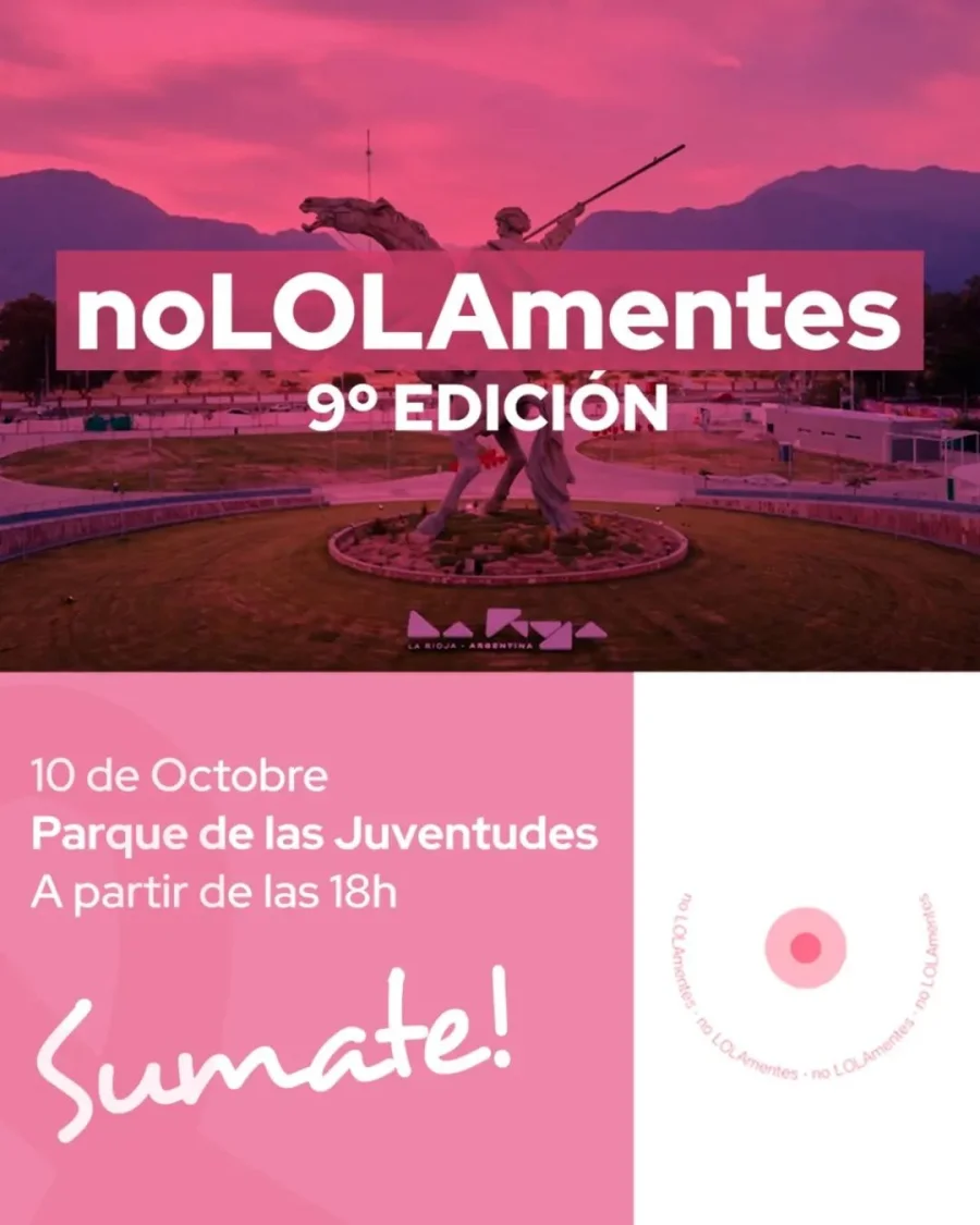 La ciudad de La Rioja será nuevamente sede de una jornada de concientización, apoyo y reflexión con la novena edición de “NoLOLAmentes”, que se realizará el próximo 10 de octubre en el Parque de las Juventudes.