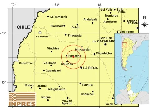 Dicho temblor ocurrió en el oeste provincial, ya que el epicentro fue situado a 39 km al noreste de Chilecito, a 59 km al sudoeste de Aimogasta y a 60 km al noroeste de la ciudad de La Rioja.