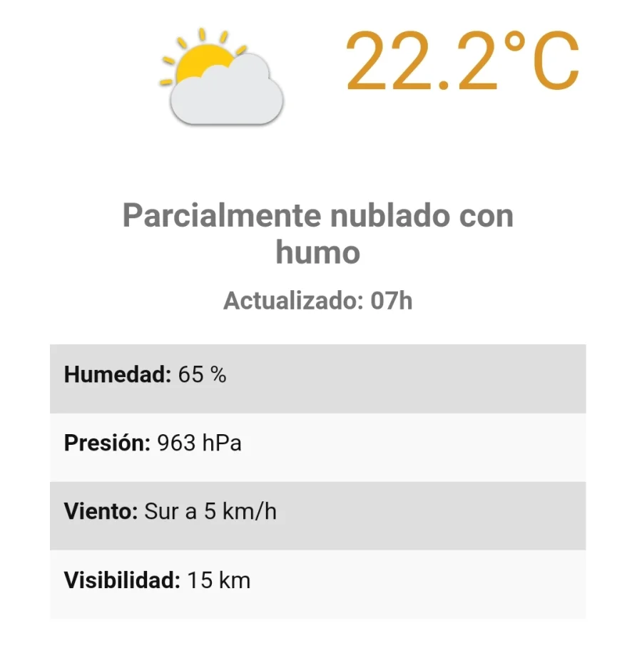 Agrandar imagen Enviar Imprimir Martes parcialmente nublado en Capital Unirme al canal de Whatsapp de "Nueva Rioja" Cielo parcialmente nublado con humo para comenzar la jornada del martes en La Rioja.