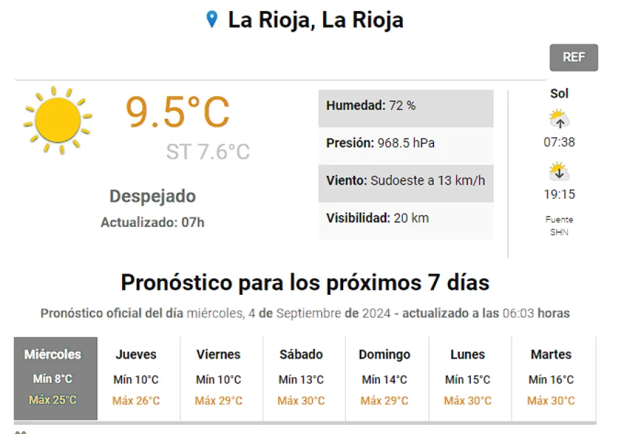 El SMN indica que para hoy la temperatura máxima será de 25 grados y la mínima será de 8°C.