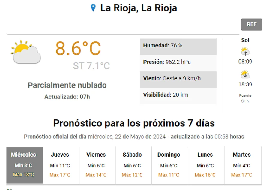 Según el SMN la temperatura máxima para hoy será de 18 grados. No hay pronóstico de lluvia.