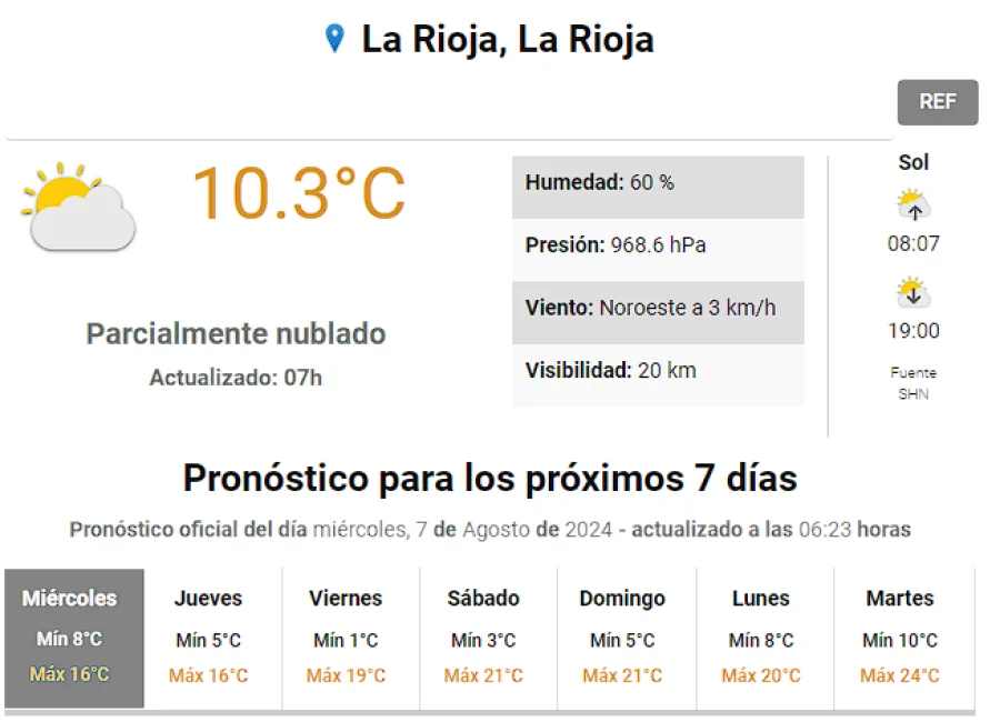 Agrandar imagen Enviar Imprimir Miércoles con temperaturas frescas Unirme al canal de Whatsapp de "Nueva Rioja"