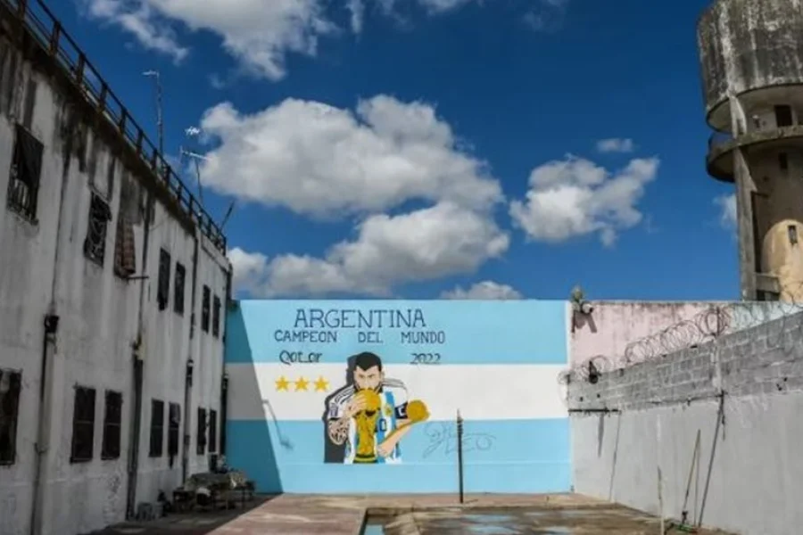 "Cuando Argentina perdió el primer partido con Arabia Saudita, dije, medio en broma, que si llegábamos a salir campeones, dibujaba a Messi en el patio. Y acá estoy, porque él es todo para mí", contó Jorge, uno de los internos que realizó el diseño del mural.